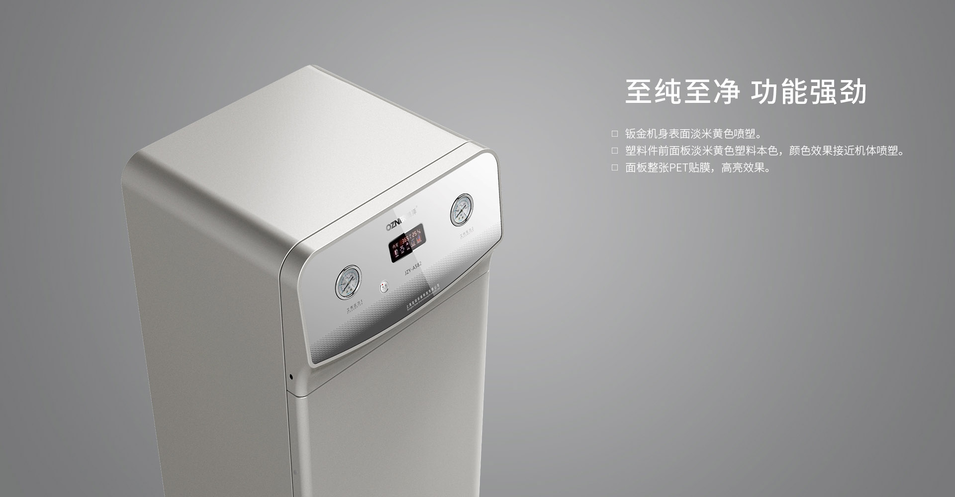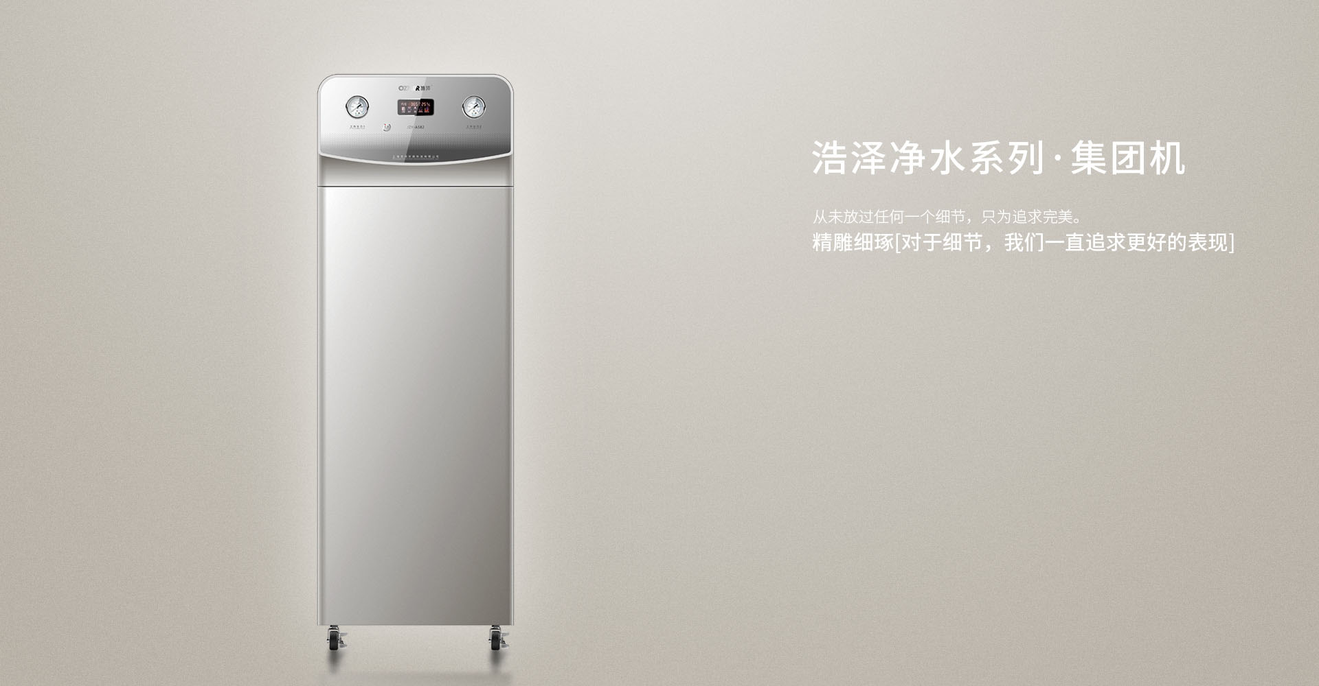 浩澤凈水系列-集團機。從未放過任何一個細節(jié),只為追求完美。精雕細琢,對于細節(jié),我們一直追求更好的表現。鈑金機身表面淡米黃色噴塑。深度凈化水質,讓更多人品嘗健康水的味道。
