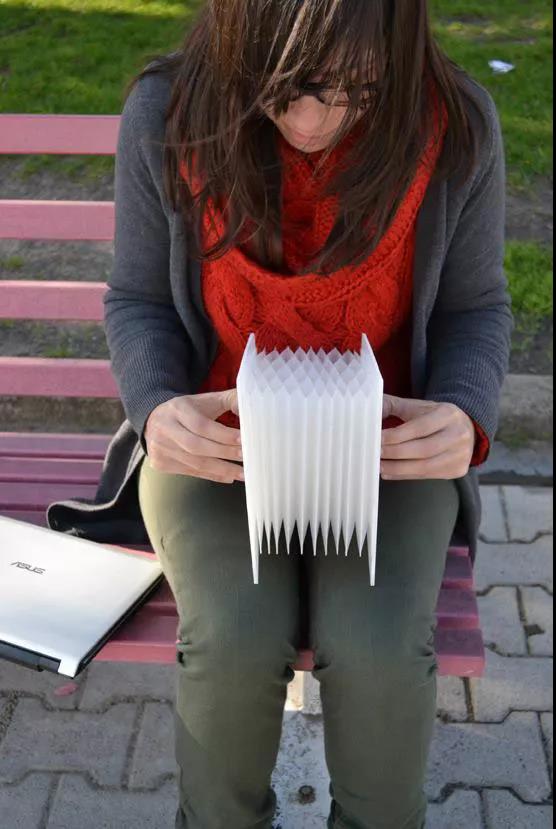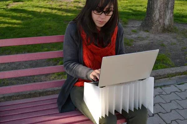 01-通過折紙展開的電腦支架,紙的重量非常輕,再配合折疊設(shè)計的減低所占空間,非常便攜