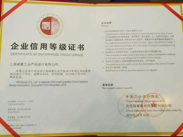 威曼設(shè)計(jì)榮獲首批行業(yè)A級(jí)以上信用等級(jí)企業(yè)榮譽(yù)!