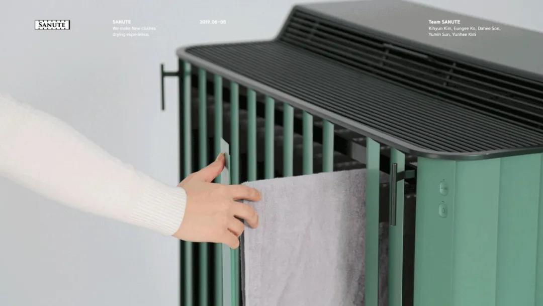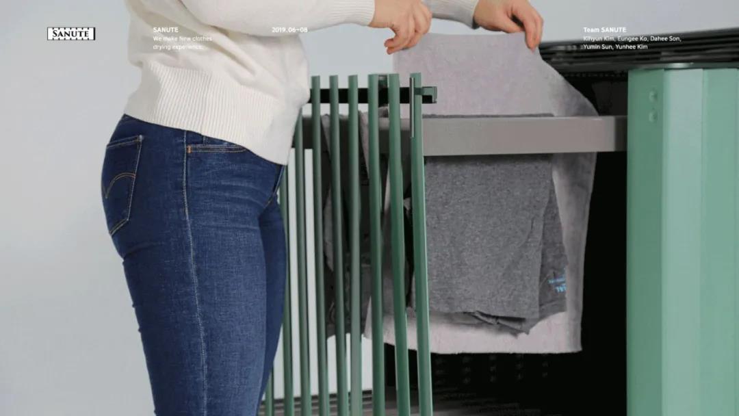柵格的設(shè)計(jì),正好滿足整理晾衣的需求,前面板可以整體打開,也可以將單個(gè)柵格獨(dú)立拉出