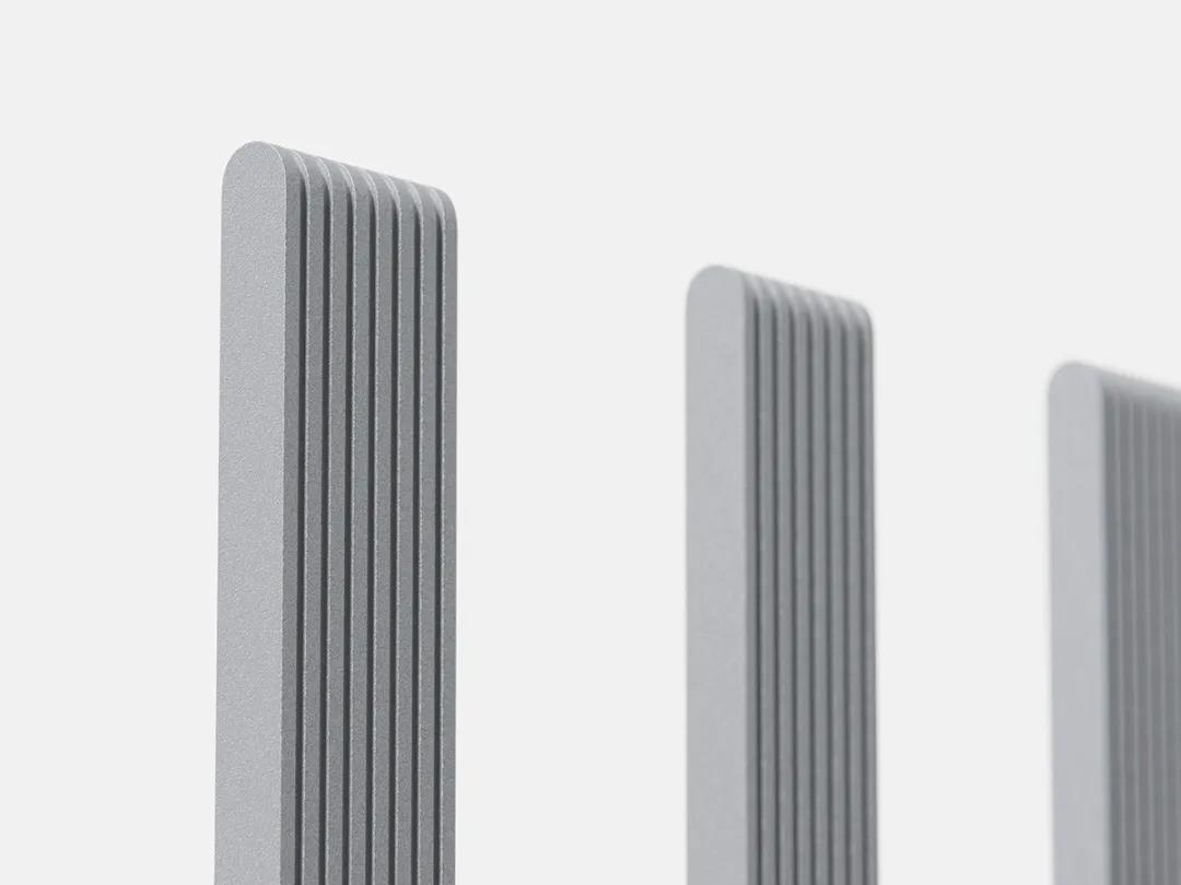 產(chǎn)品大膽采用干凈的電鍍鏡面效果配合整齊的紋理,形成鮮明對(duì)比,在柵格的底部,正好鏤空散熱,維持了產(chǎn)品的整體性