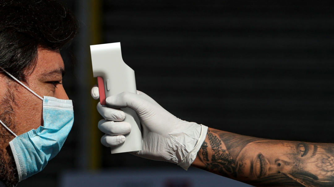 01-非接觸式溫度計,在方形倒角的基本型上切割出平面,正好作為顯示屏