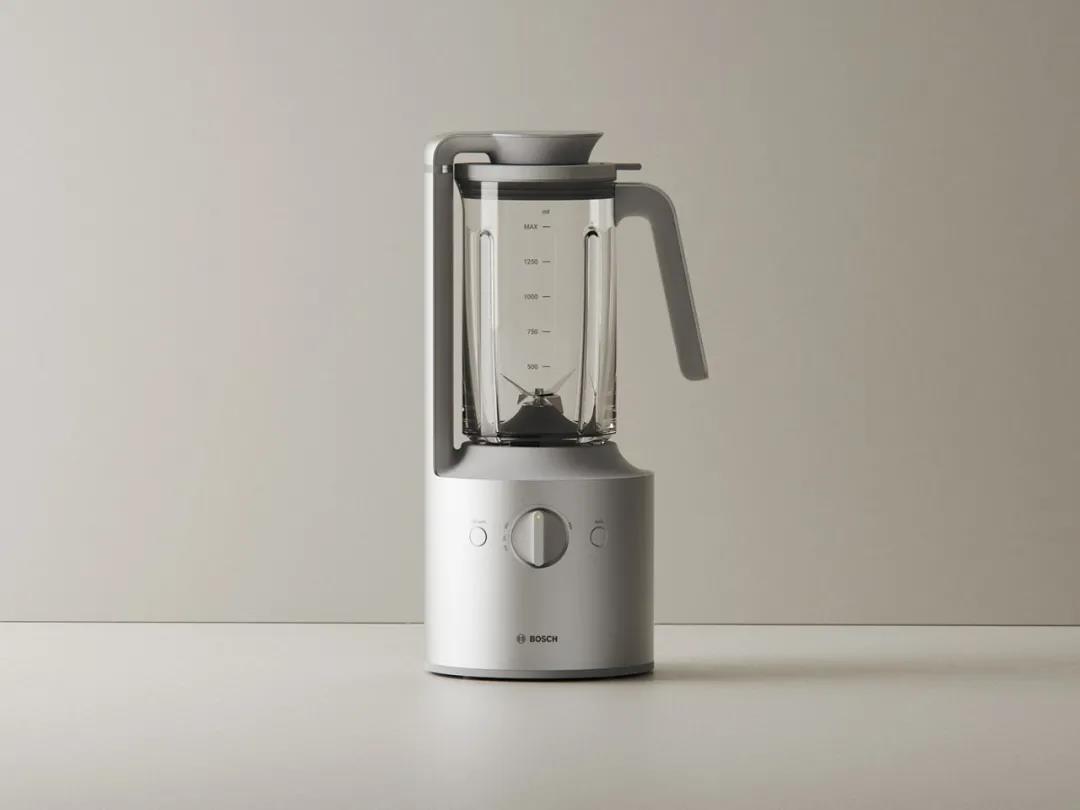 05-這款真空攪拌器,在圓柱的基礎(chǔ)上切割出有趣的造型,保留頂部抽真空的裝置,立柱支撐