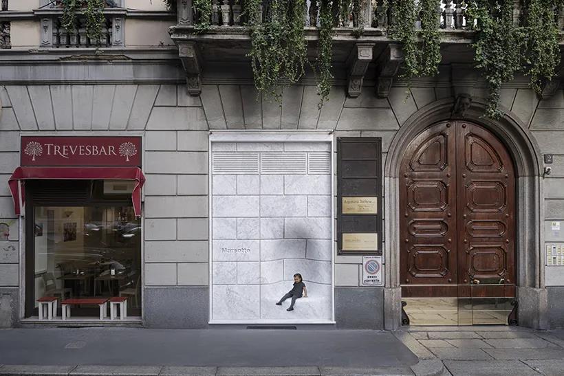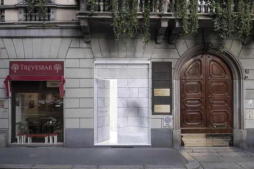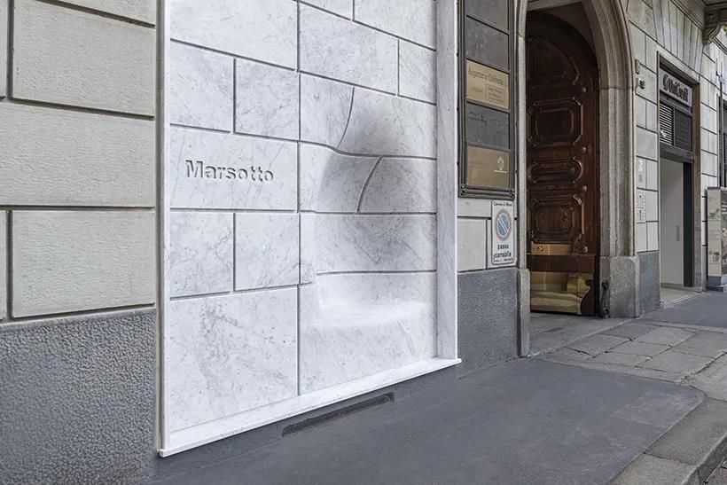 07- 這個(gè)大理石墻壁有一個(gè)“奇怪”的凹坑,便成了可以工人休息的座椅by: nendo