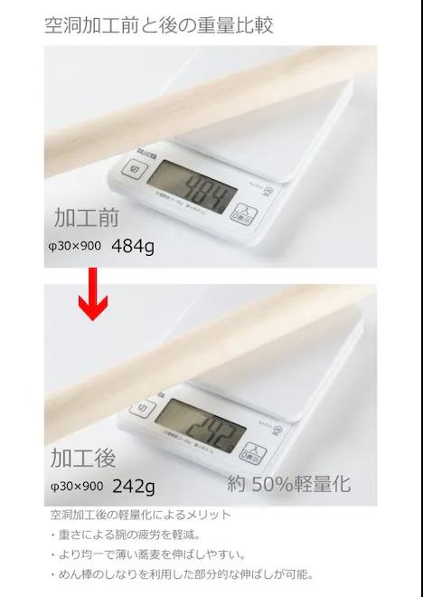 03-搟面杖中心做了掏空?不僅可以降低重量使操作更加省力,也可以增加其強度防止變形by: nakamura toyozo shoten