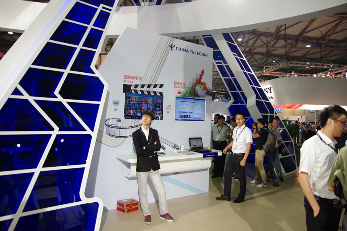 電信集團(tuán)受邀參加亞洲移動通信博覽會,分為智慧城市區(qū)域、NFC區(qū)域、智慧家庭區(qū)域、車聯(lián)網(wǎng)區(qū)域、智慧城市沙盤區(qū)域、終端展示區(qū)域。整體展位強(qiáng)調(diào)視覺沖擊力,同時挖掘吸引觀眾眼球的設(shè)計亮點,給觀眾帶來耳目一新的感受和品質(zhì)卓越的深刻印象,通過LED、多媒體互動等元素來吸引觀眾,聚集人氣。