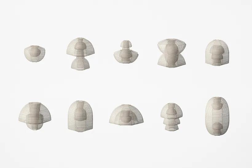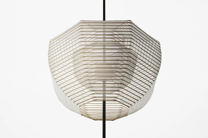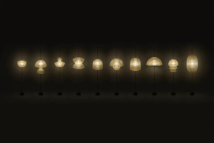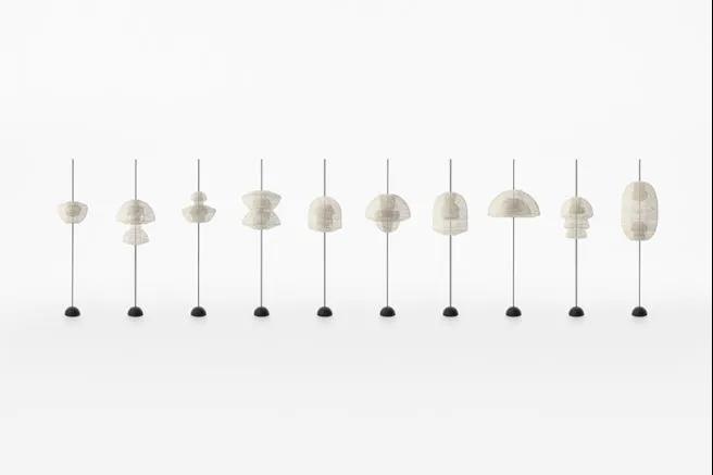 nendo 用傳統(tǒng)紙燈籠的元素,增添了柔軟的新型可變形的設(shè)計,一共十款,穿插變形不僅造型多樣,通過不同的光影調(diào)節(jié),也帶來許多新鮮的體驗
