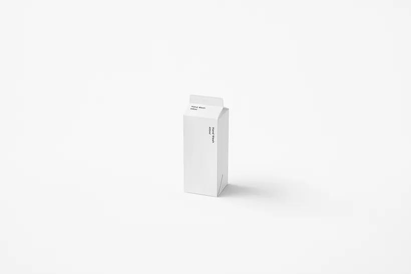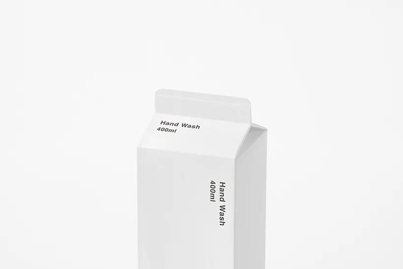 用類似牛奶盒子的洗手液補充裝,可作為瓶體直接使用,尖角的細節(jié)正好滿足用完所有液體,紙盒代替塑料助力環(huán)保