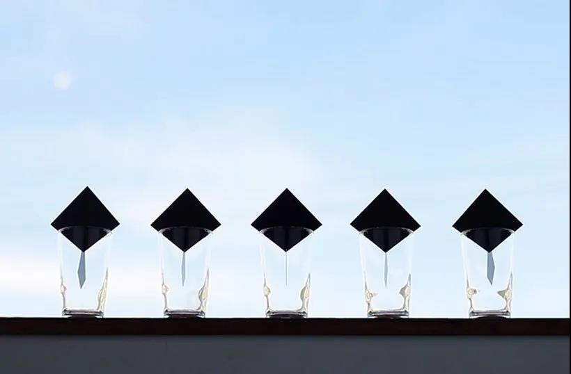 這是一個(gè)由金屬方塊和玻璃杯組成的風(fēng)鈴