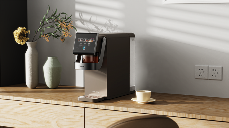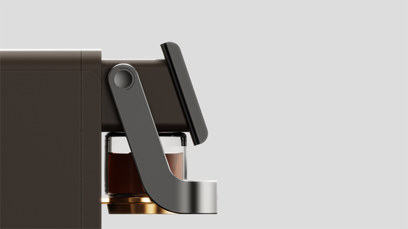整體設(shè)計輕奢復(fù)古,點綴以中式元素,契合中國茶文化傳統(tǒng)。其機(jī)械壓桿操作,增強(qiáng)交互體驗,提升儀式感!
