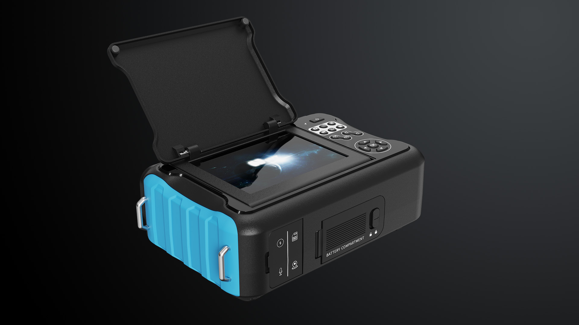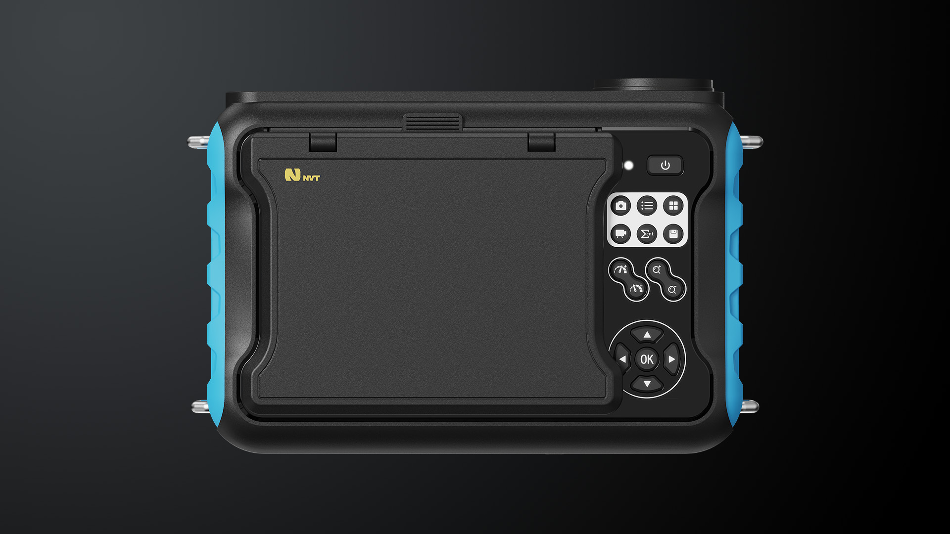 北方夜視三光相機,整體軍工風格設計,大面積黑色曬紋塑料件搭配局部拋光處理,包膠設計貼合人機工學。獨創(chuàng)雙鉸鏈設計,做到屏幕與遮陽蓋一體化設計。按鍵區(qū)域模塊化設計。