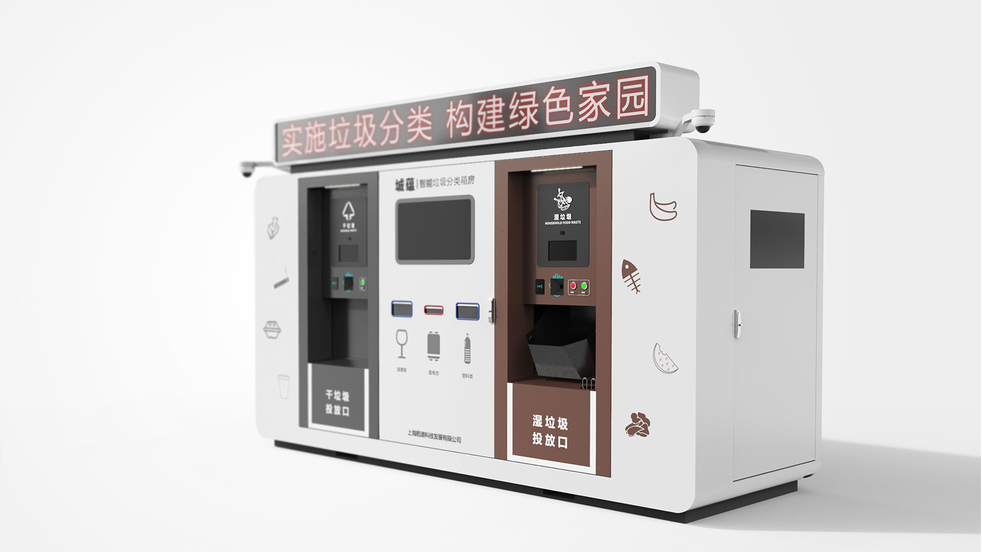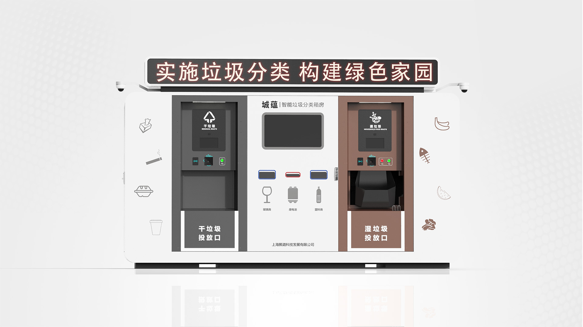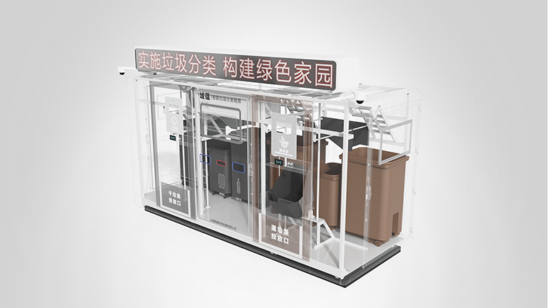 社區(qū)智能垃圾分類設(shè)備,可自動檢測分類干濕垃圾,實現(xiàn)智能分類。整體外觀造型簡潔大氣,合理的功能分區(qū),使得產(chǎn)品操作性更強;