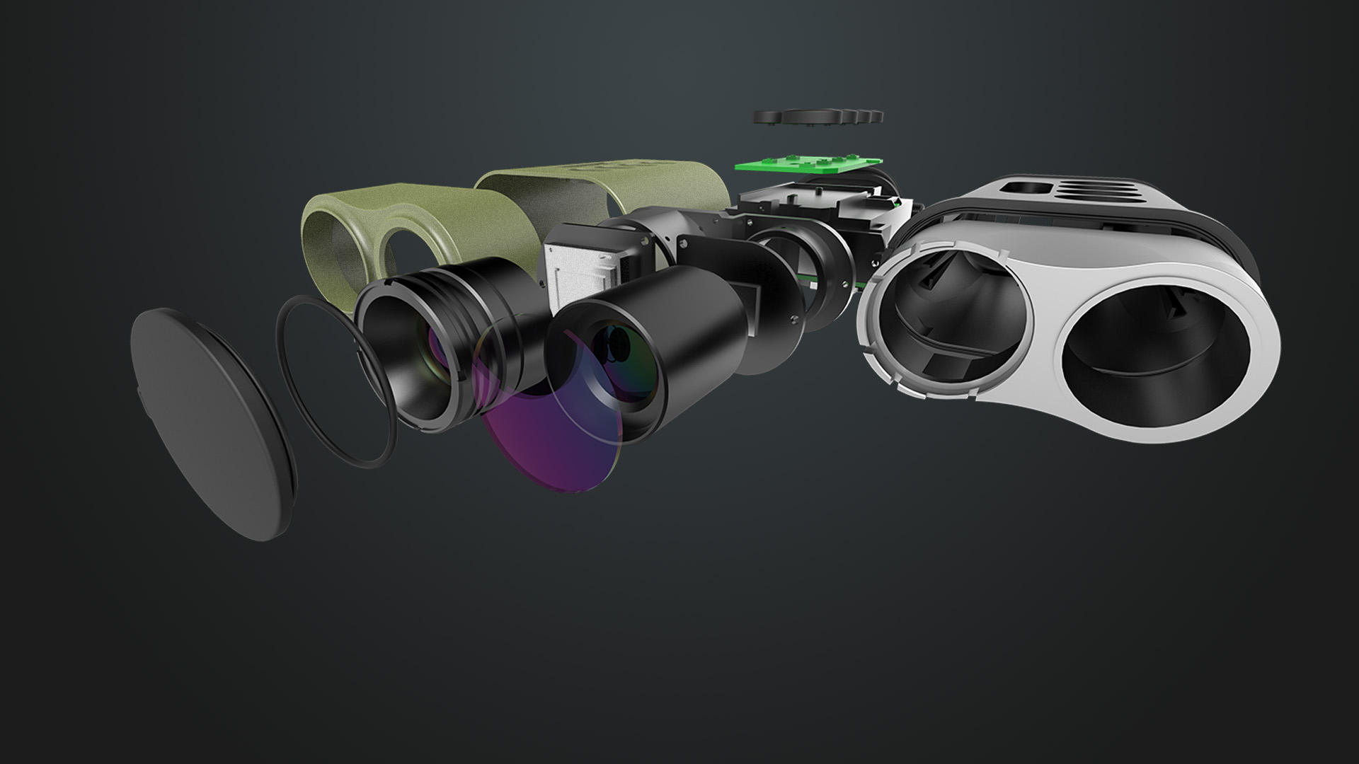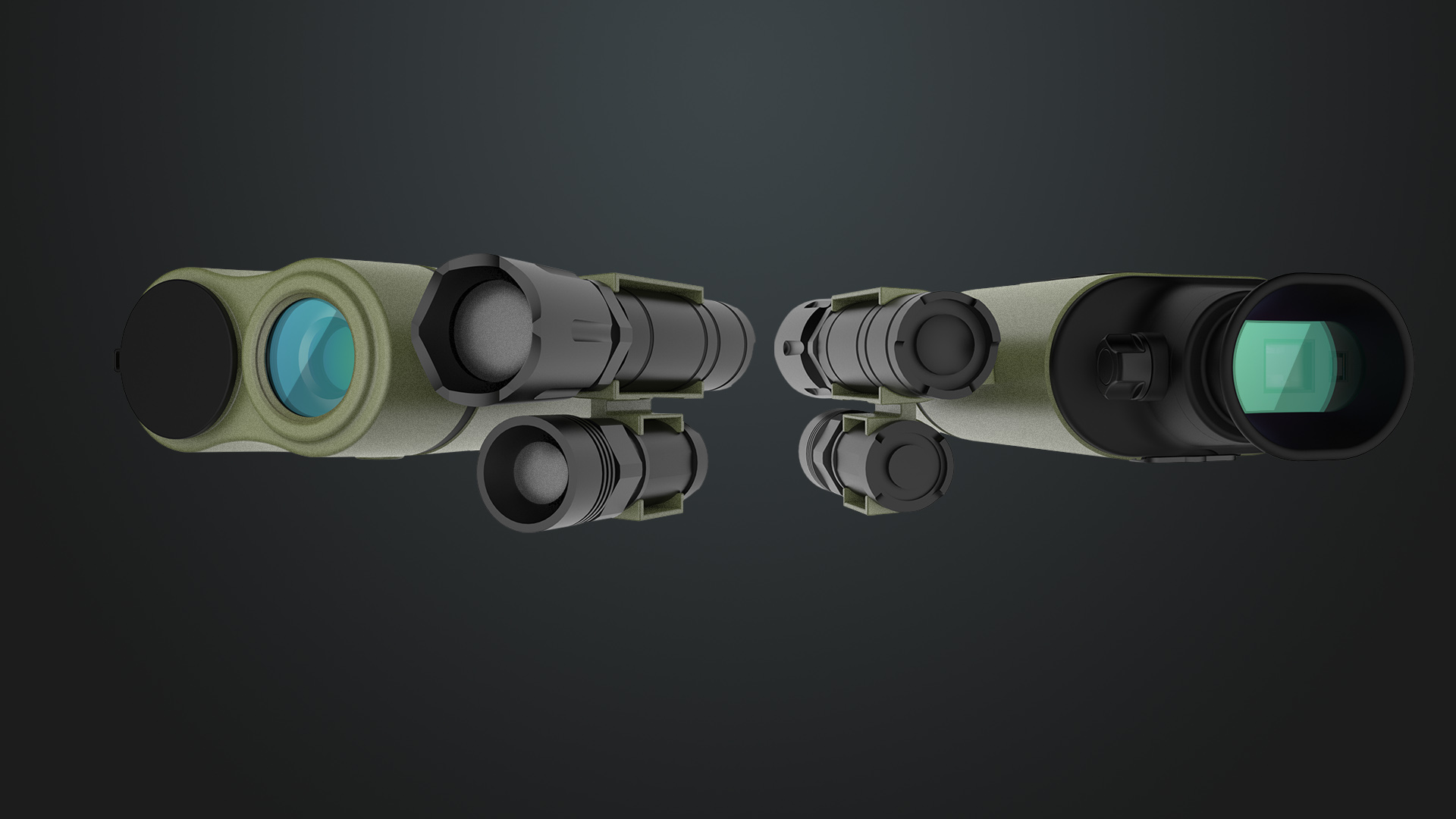 紅外雙光夜視儀,為達到IP68等級的防摔防水要求,采用塑殼、鋅合金、硅膠套配合設計。整體采用膠囊型設計,配合內(nèi)部結(jié)構(gòu),做到外形與內(nèi)部器件相輔相成。