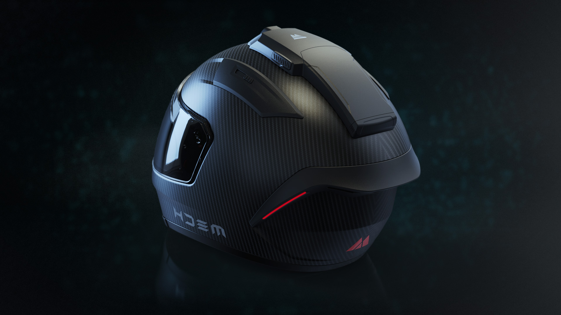 深圳朋馬斯智能機(jī)車頭盔塑造張揚(yáng)個(gè)性、科技力量感、線條鋒利流暢、折線切割倒三角設(shè)計(jì),增強(qiáng)頭盔力量感和攻擊性。