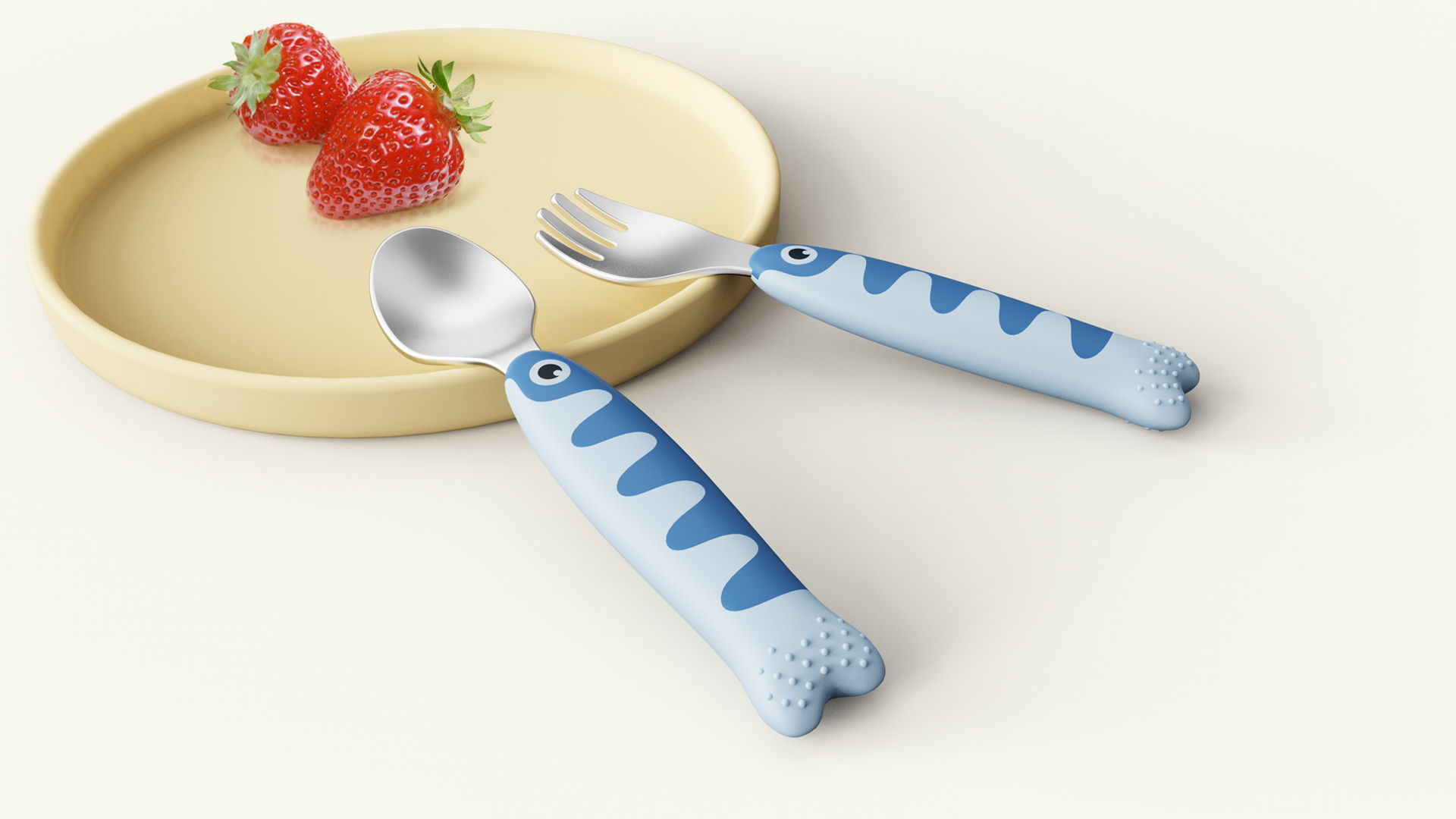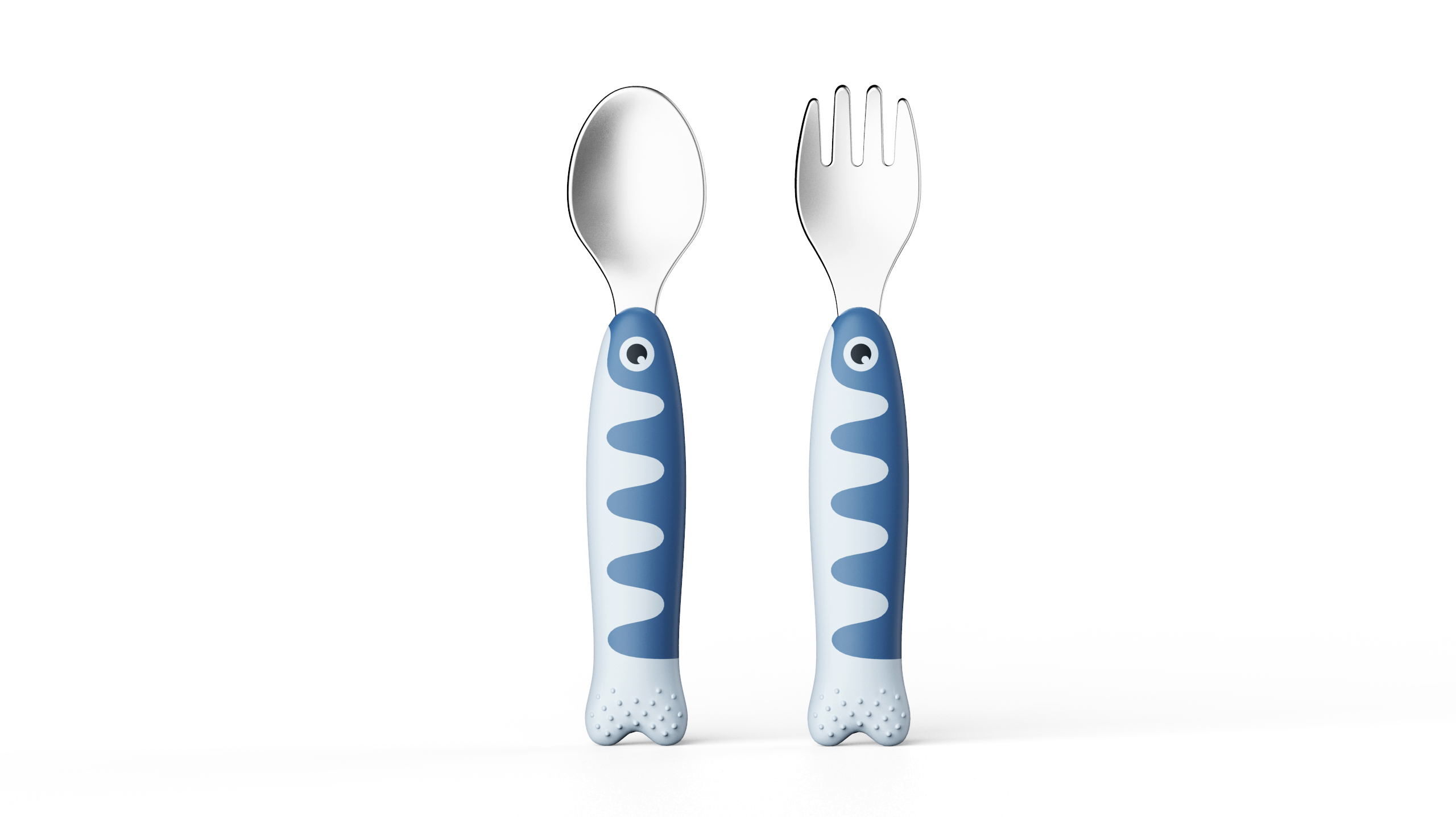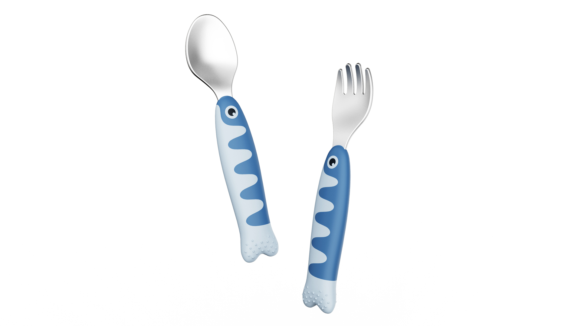 產(chǎn)品內(nèi)容可愛有趣的外觀,符合寶寶手握人機工學(xué)的曲線設(shè)計,讓寶寶愛不釋手的萌趣造型,讓寶寶更加喜歡自主進(jìn)食。二次注塑的魚兒花紋設(shè)計,讓產(chǎn)品更生動活潑。